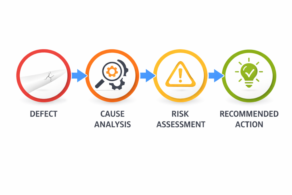We re-evaluate existing inspection data and completed analysis reports to verify accuracy, completeness, and consistency. This quality control check helps identify missing defects, misclassifications, inconsistent severity assessments, or gaps that could impact technical and financial decision-making. While inspection providers and analytical tools aim for the highest possible accuracy, it is no secret that minor — and occasionally even critical — issues can be missed. In practice, miss rates are never truly zero. Human factors, data volume, inspection conditions, and interpretation differences can all lead to overlooked defects. The same applies to automated and AI-based tools, which, despite their strengths, cannot guarantee 100% defect capture in real-world conditions. For this reason, an independent second review is a valuable safeguard, even when there is full confidence in the inspection provider and analysis process. Our re-evaluation acts as an additional quality layer, helping reduce risk, validate findings, and increase confidence in inspection results before repairs, reinvestments, or further inspections are planned.